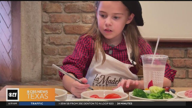 Third grader Katherine Peel wrote a review of La Madeline for her school newspaper, which her dad shared online, catching the restaurant chain's attention. Lauren Crawford reports.