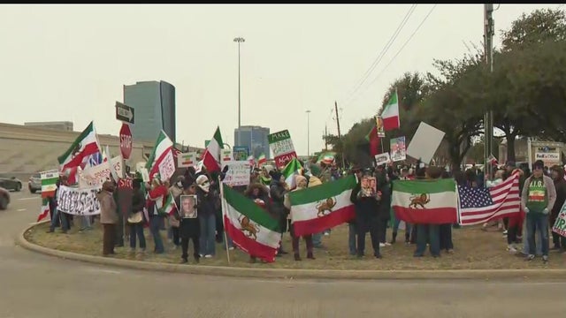 A crowd gathered along the Sam Rayburn Tollway in Frisco today, waving flags and signs in support of demonstrators in Iran. The rally comes amid reports of a brutal government crackdown overseas, with some accounts citing thousands of deaths. The Trump White House, which initially said the U.S. would respond to the killings, is now calling for an end to the rule of Iran’s supreme leader.