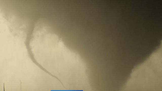 New video shows two tornadoes appearing to combine and touch down in northern Oklahoma. This is west of Braman, which sits along I-35. State troopers briefly shut down a stretch of the interstate while the storm passed,
