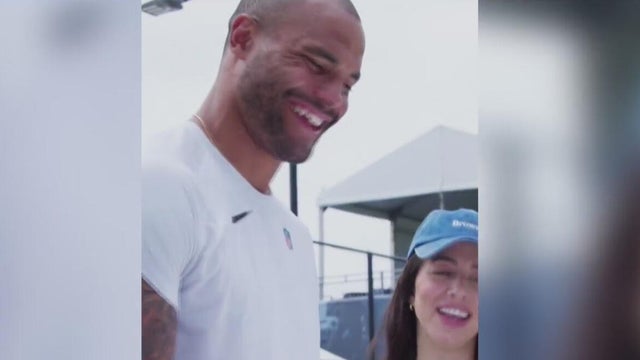 Prescott's fiancée Sarah Jane presented him with a birthday card from their family of four, which includes daughters MJ and the Cowboys family as well.