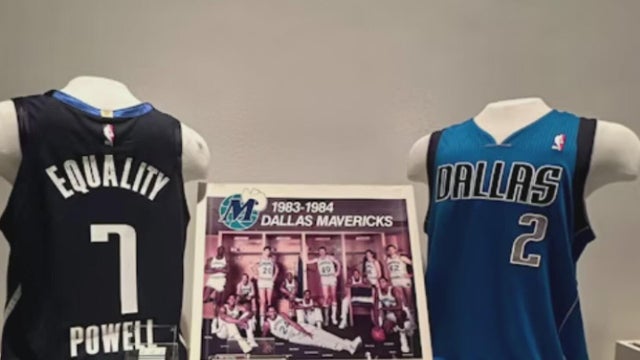 Some of the items on display include a signed basketball from the team’s historic 2011 NBA championship season, a jersey worn by Jason Kidd and a pair of signed sneakers by Dirk Nowitzki.