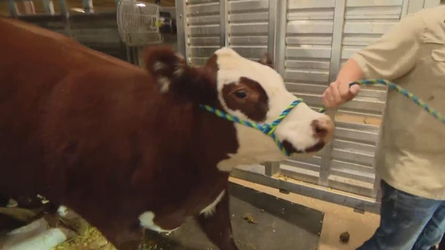 Students are getting ready to show off their steers for sale.