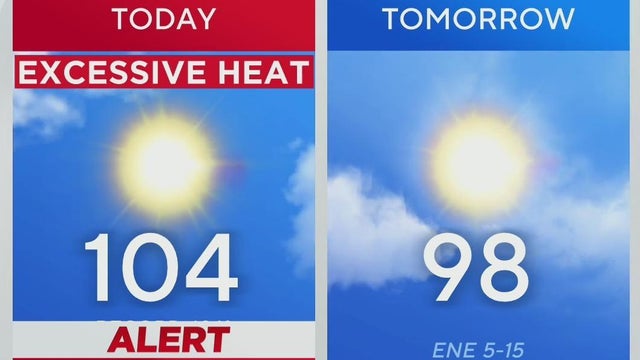 Dallas experienced its hottest day of the year at 103 degrees, with a forecast of 104 degrees on Thursday. There is a 20 percent chance of rain overnight and into Thursday morning, with potential showers in the southwest corner by afternoon.