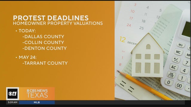 If you want to protest the appraised value of your home set by your county's taxing district, you only have a few hours to make that filing. If you file in Dallas County, Collin County or Denton, that deadline is Wednesday, May 15. But for those in Tarrant County, you have until Friday, May 24.