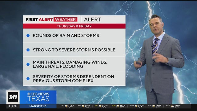 Several rounds of rain are possible with the potential for strong to severe storms Thursday and Friday in North Texas.