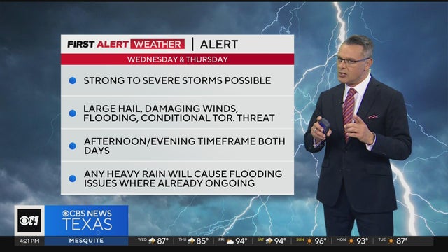 The Storm Prediction Center does have most of DFW highlighted under a Level 3 "Enhanced" risk Wednesday and a Level 2 "Slight" risk for Thursday.