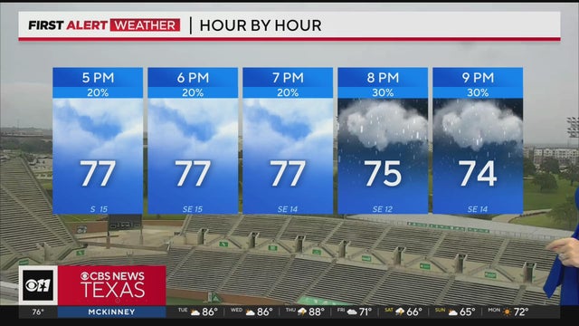 CBS News Texas meteorologists have a weather alert posted for tonight into early Tuesday for the threat of strong to severe storms in parts of North Texas. Storms will likely impact our area from about 7 p.m. to 2 a.m.