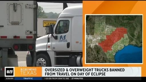 The Texas DMV is banning oversized, overweight trucks from traveling within the path of the total solar eclipse, which includes our most-populated counties here in North Texas. That ban be in effect from midnight April 8, to midnight April 9.