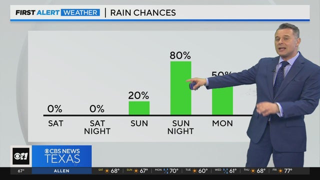 A cool start is expected Saturday, but temperatures should warm up into the mid- to upper-60s in North Texas. Rain chances increase Sunday and into Monday.