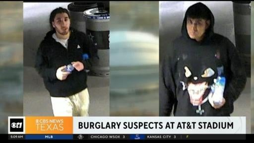 The Arlington Police Department is asking for help in identifying two suspects shown in AT&T Stadium surveillance video. Investigators say the video shows them breaking into the stadium and stealing several different items.