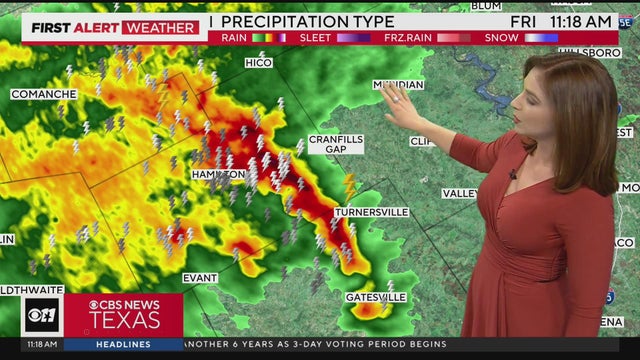 Our First Alert Weather team has continued the weather alert into at least the early afternoon hours Friday. Storms are scattered throughout North Texas.