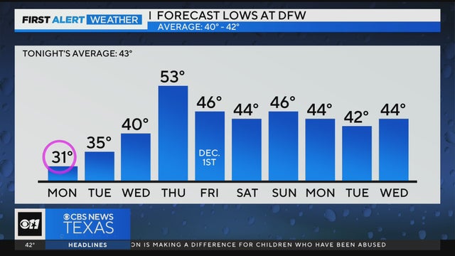 This will be the first freeze of the season for the DFW Airport.