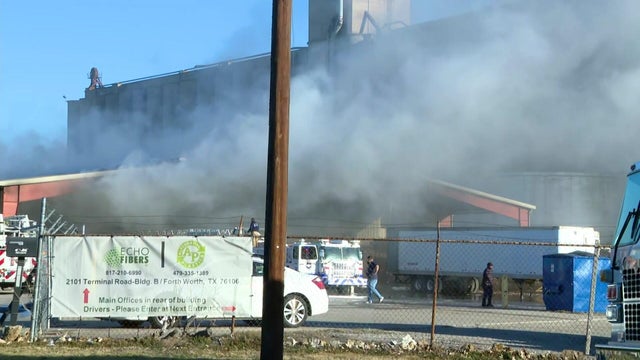 The Fort Worth Fire Department responded to the 2-alarm fire just before 7 a.m. in an industrial area in North Fort Worth near Terminal Road and Weber Street.