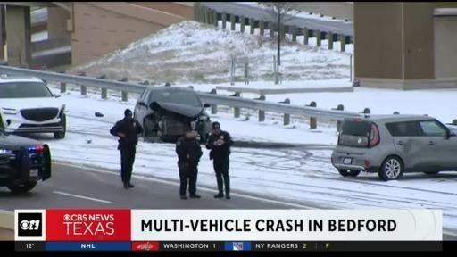 One crash happened on the south bound lane from 121 to 183 going west. A second crash happened, almost simultaneously, on the north bound lanes from 183 going north bound on 121. In total, some 15 cars were involved in the crashes. Police tell CBS News Texas that no injuries were reported.
