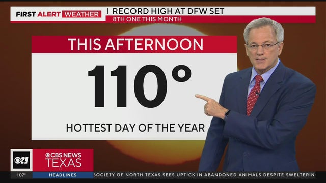 DFW reached a new record high temperature of 110 degrees this afternoon. Not only is this the hottest day of the year, but it is also the hottest day that we've seen in 12 years.