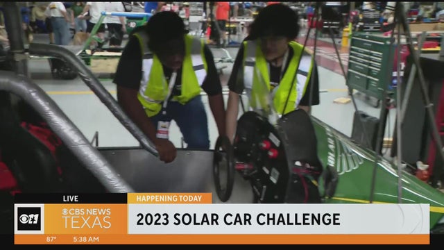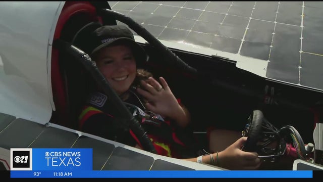 CBS News Texas' Brittany Rainey rode along with high schooler Jude Sawyer, who is competing in the 30th Solar Car Challenge at the Texas Motor Speedway. He explains how his team created an electric solar-powered car, with no solar panels.
