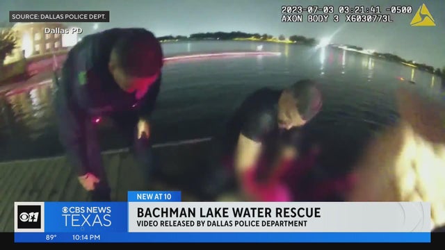 Two Dallas police officers saved a woman from a vehicle submerged in Lake Bachman hours after July 4th celebrations ended.