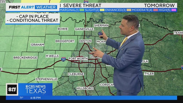 Parts of North Texas could see severe weather on Wednesday, but a strong cap in place could keep storms away.