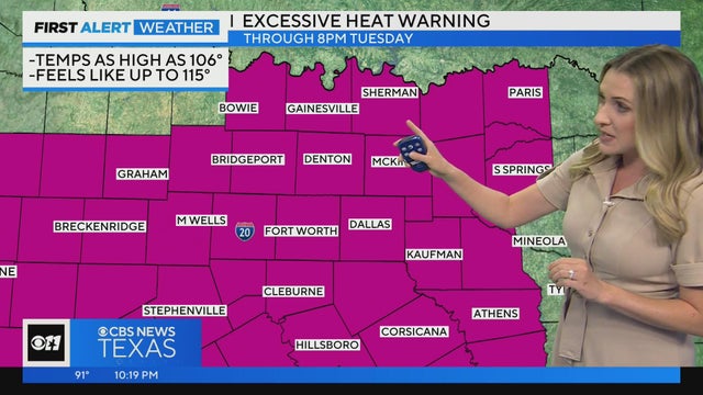 Most of North Texas is now under an Excessive Heat Warning until 8 pm Tuesday.