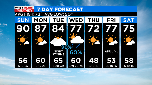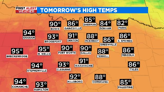 Tomorrow we really crank up the heat and likely hit 90 degrees in DFW for the first time this year! It will served with lots of sunshine and strong southerly winds.