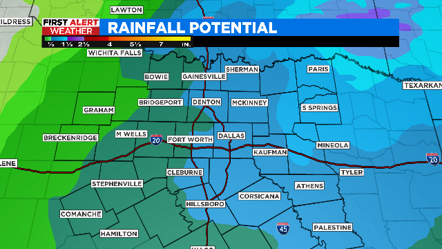 Areas east of I-35 could see around 1.5" of rain with lesser amounts further west.