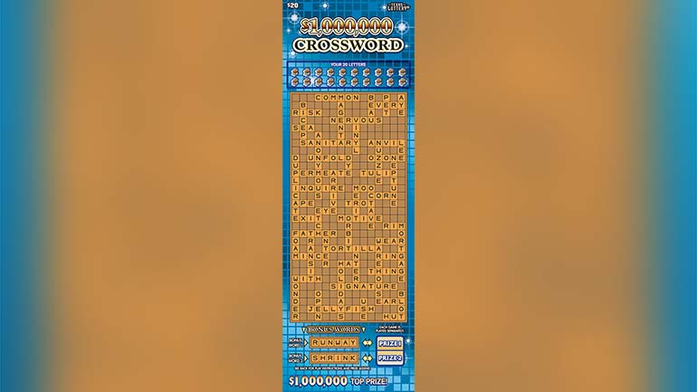 The $1,000,000 Crossword game offers over $137.4 million in total prizes. The odds of winning any prize, including break-even prizes, is 3.42.