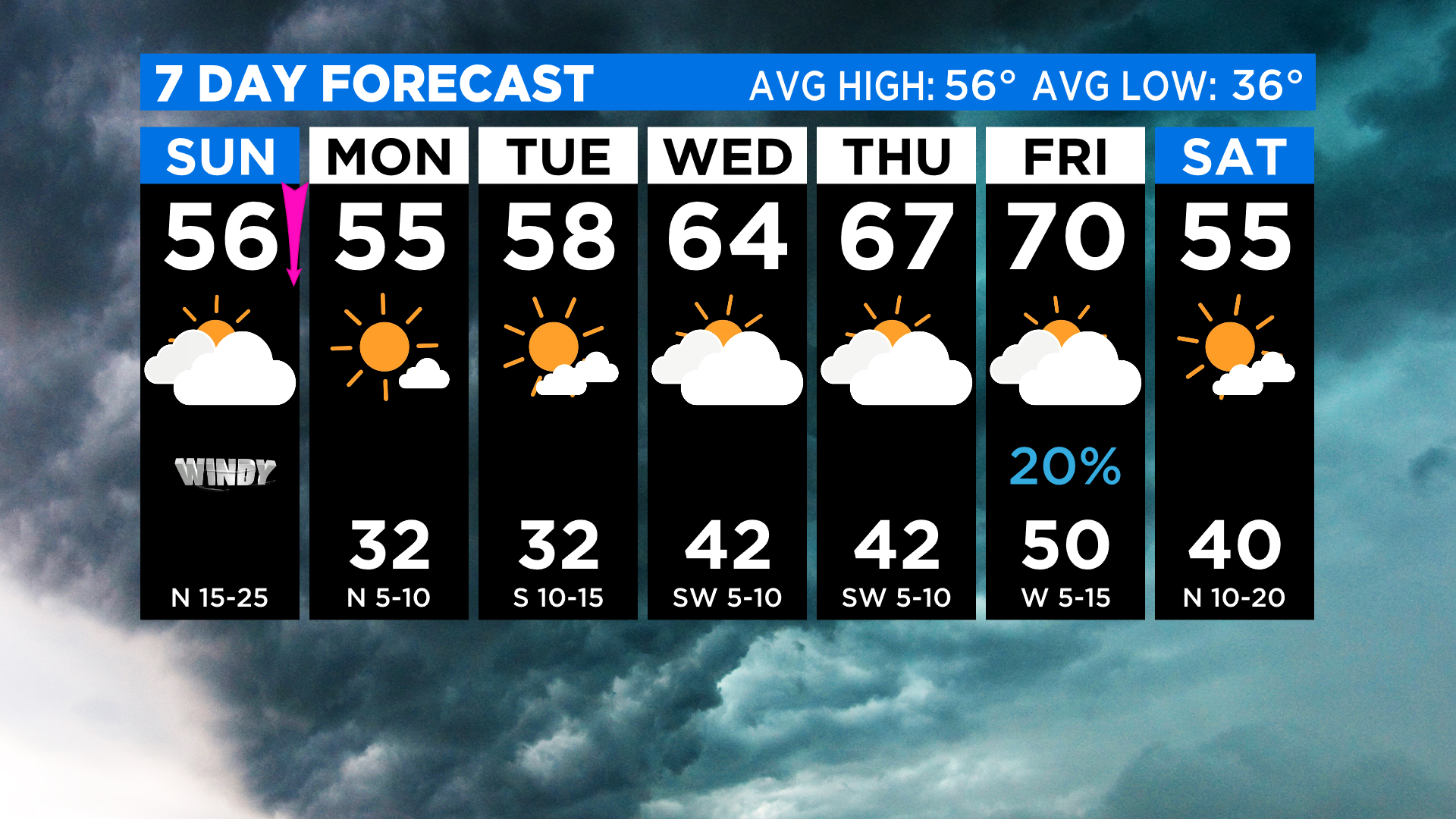 A few more clouds for our Tuesday but we enjoy seasonal temperatures. Our morning will start off around 32 degrees and warm into the upper 50s for the afternoon.