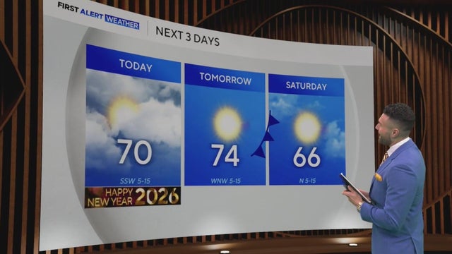 New Year's Day in North Texas will be mild, with highs reaching near 70 degrees after a cool morning.