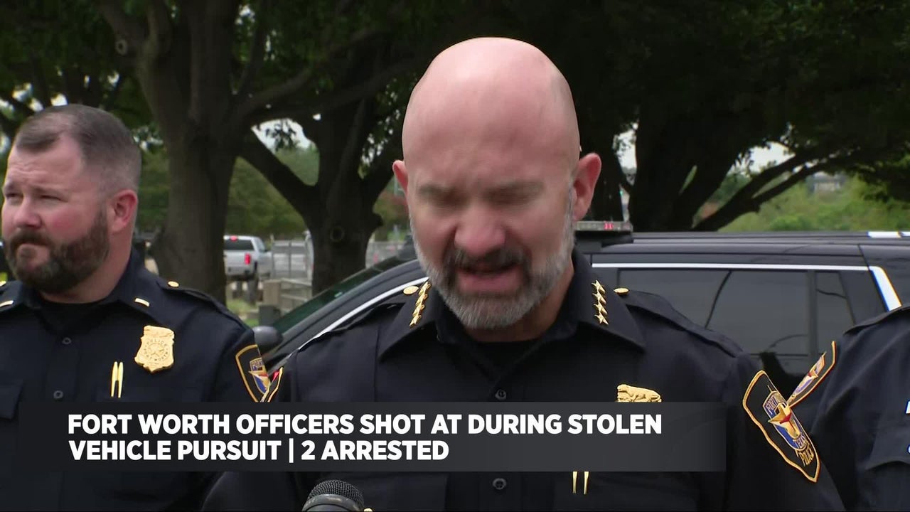Two people were arrested after a stolen vehicle pursuit. Fort Worth officers were shot at during the pursuit. The chase ended in North Richland Hills.