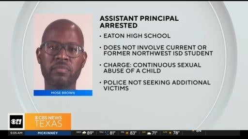 An assistant principal at Easton High School in Northwest ISD has been arrested and charged with contentious sexual abuse of a child under 14. Fort Worth police took Mose Brown into custody this week after being placed on administrative leave and banned from district property pending the outcome of the investigation.