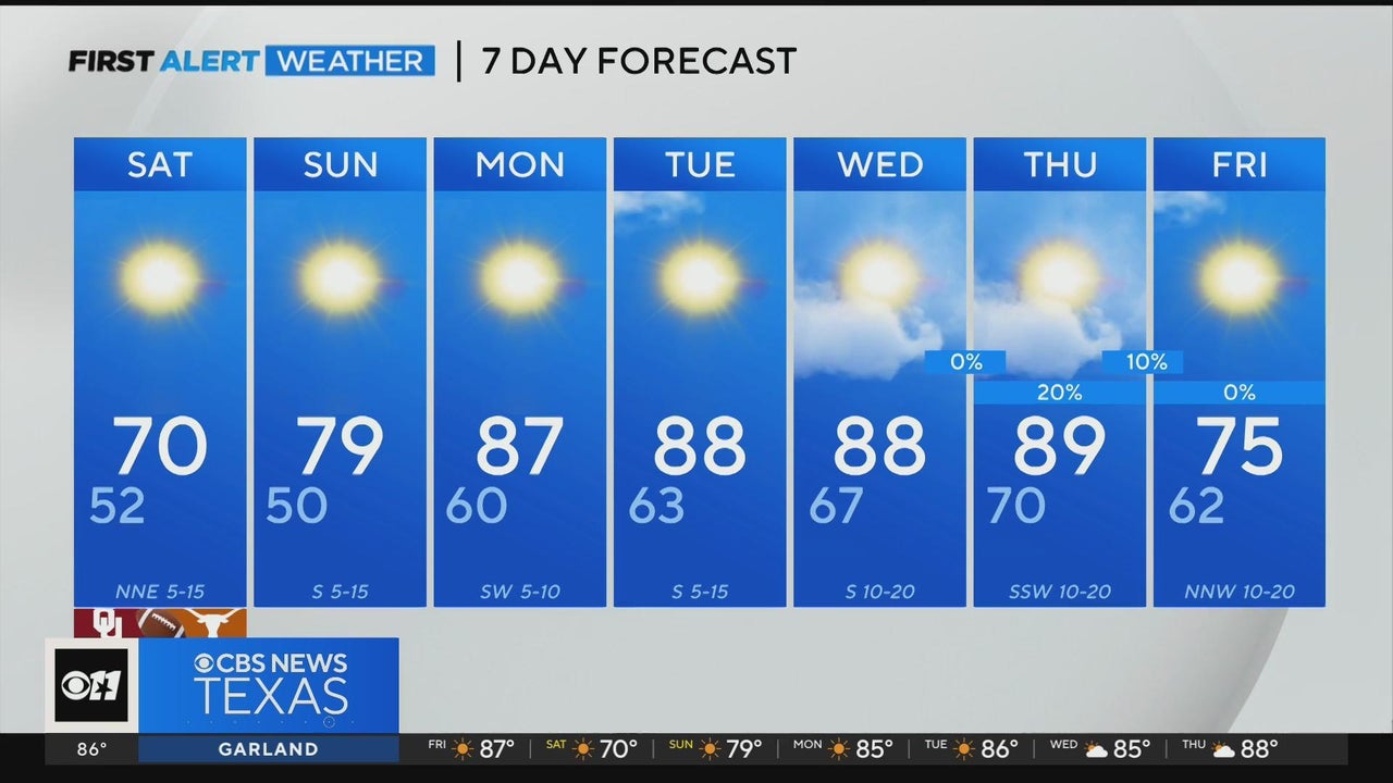 Beautiful day ahead for the Texas vs. OU game Saturday!