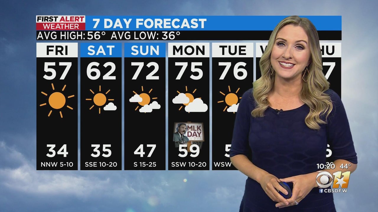 The low Friday will be 34F, with a high of 57F.