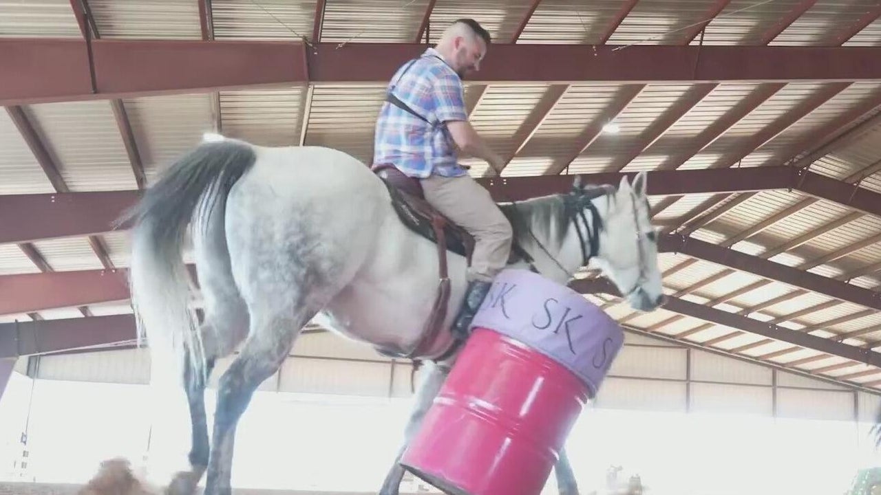 Bo Evans tried to take a lesson from NFR world champion barrel racer Kassie Mowry and found out firsthand that it's a lot harder than it looks to ride a horse around a few barrels. Mowry will compete in the American Rodeo at Globe Life Field on April 11 and 12.