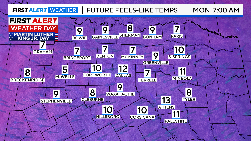 Clouds are expected to roll in on Martin Luther King Jr. Day, and several parades have been postponed as North Texas experiences temperatures similar to those on Sunday — a frigid morning with wind chills in the 20s for most of the day.
