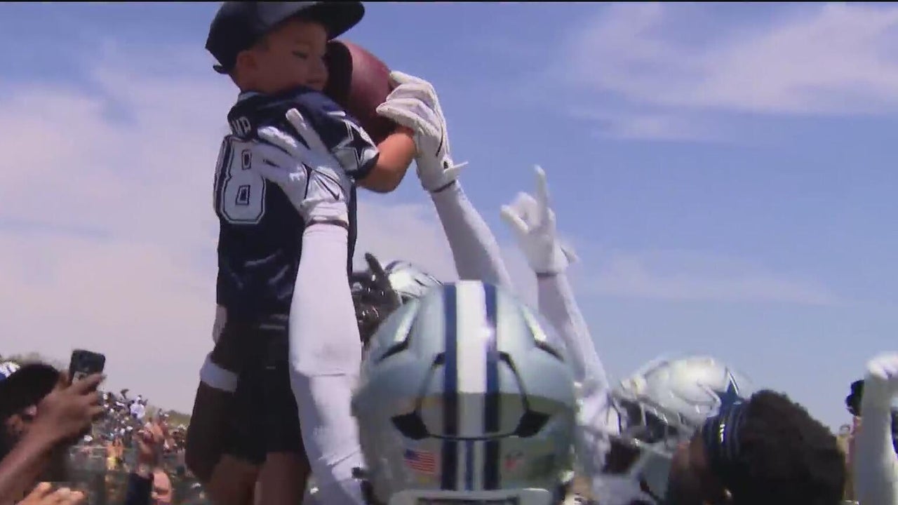 Cowboys Kaiir Elam celebrates interception with young fan