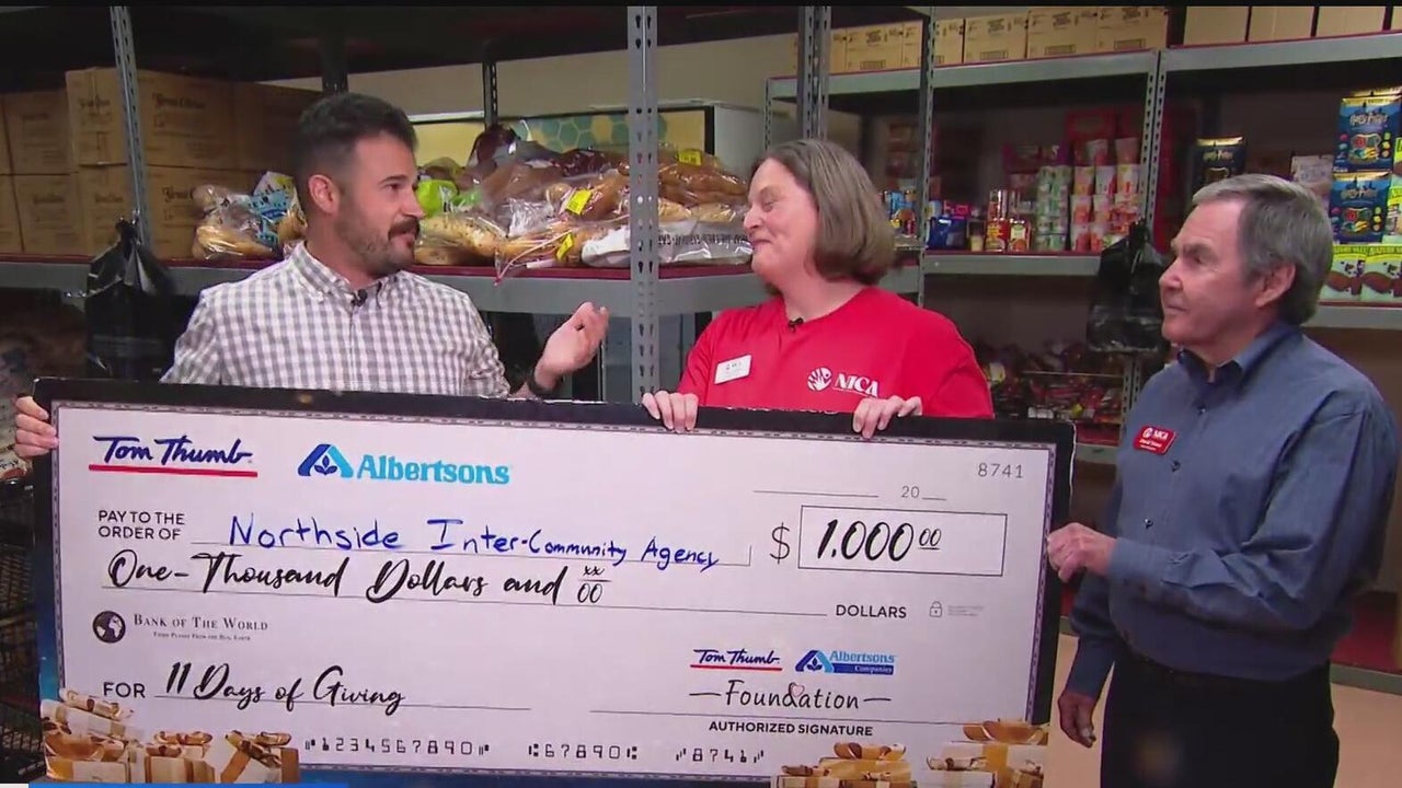 North Texas families face increased need this holiday season. To help, CBS’s 11 Days of Giving campaign with Tom Thumb and Albertsons is donating $1,000 daily to local food banks. Thursday’s donation went to Northside Inter-Community Agency (NICA) in Fort Worth, which has served the community for over 55 years.