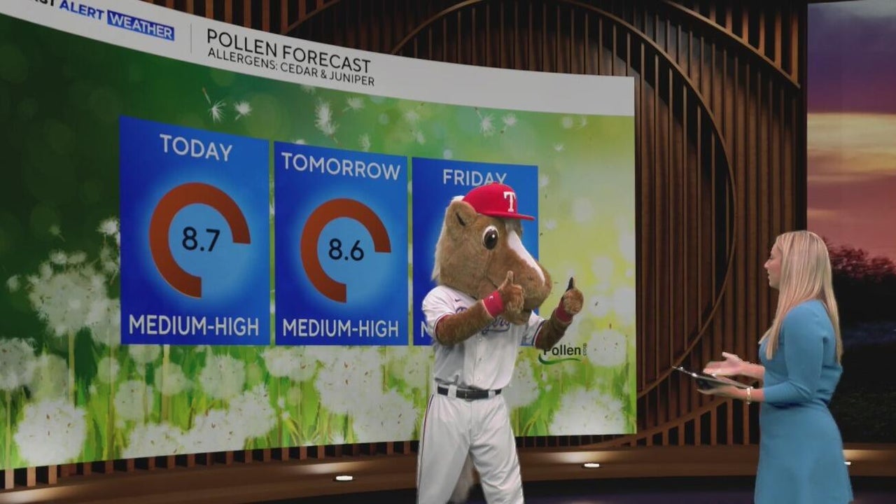 Captain, the Texas Rangers' official mascot, helped out with the CBS News Texas forecast on Wednesday.