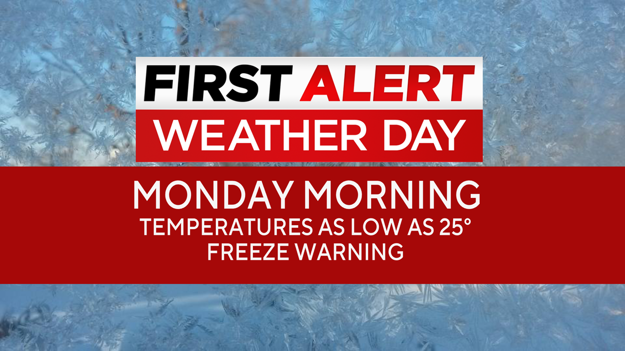 The First Alert Weather Team has issued a First Alert Weather Day for Monday morning, as our coldest air of the season moves in.