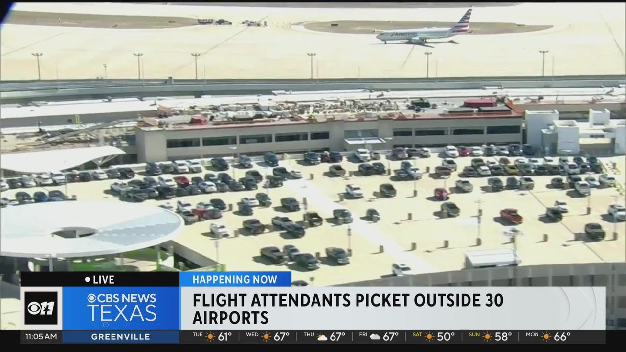 Flight attendants are picketing outside DFW International Airport and Dallas Love Field Airport, protesting for better working conditions.