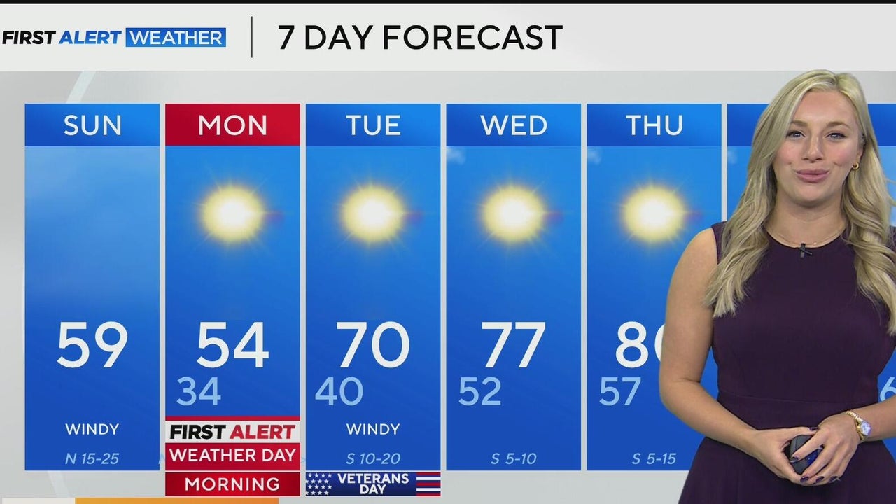 The coldest air of the season is expected on Sunday, Nov. 9. Monday lows will be near freezing, and the windchill will be in the 20s-30s.