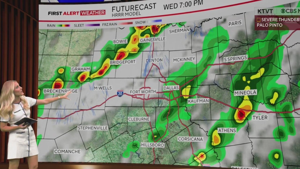 A severe thunderstorm watch is in effect as storms bring destructive hail, damaging winds, and warnings across parts of North Texas this afternoon.
