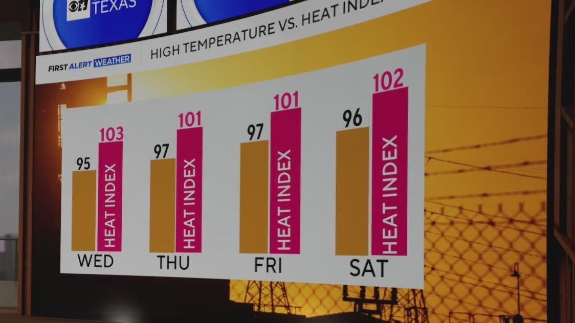 North Texas is entering a hot and muggy stretch with highs warming into the upper 90s and "feels-like" temperatures to near 105 degrees.