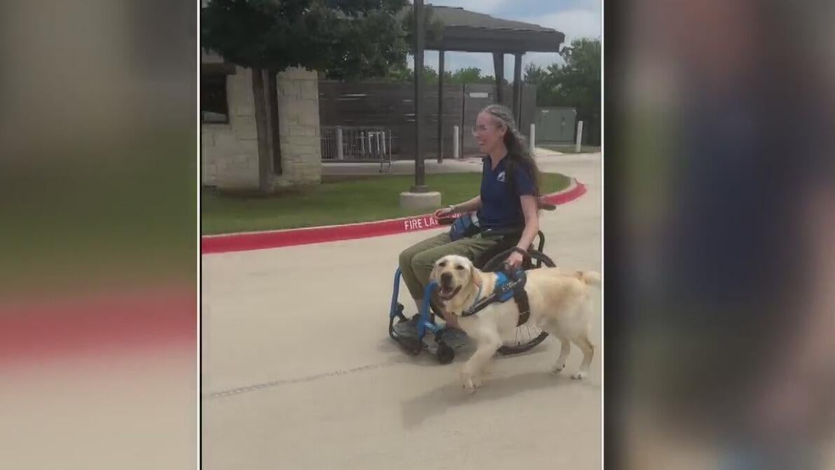 Lonestar continues wheelchair training, learns to pull heavy objects