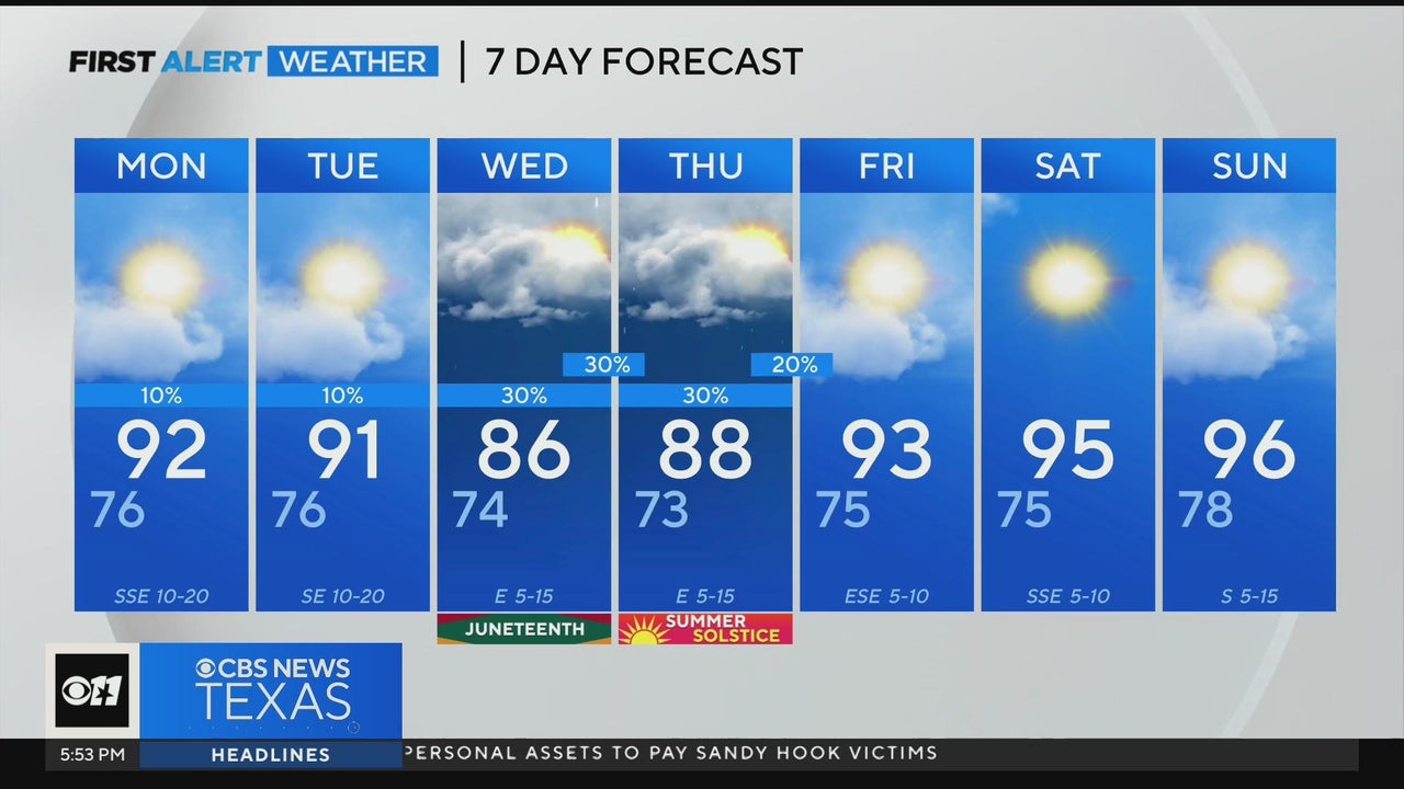 Get ready for increased humidity to start the work week, it will feel like the triple digits in the afternoons as tropical moisture moves north. Models are split on whether the rain associated with the tropical disturbance will make it as far north as DFW.