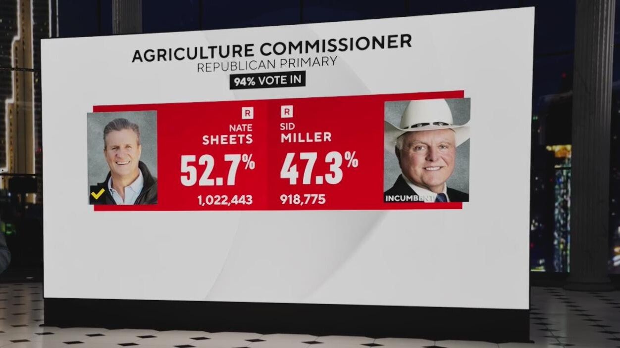Nate Sheets defeats incumbent Sid Miller in Republican primary for Texas agriculture commissioner