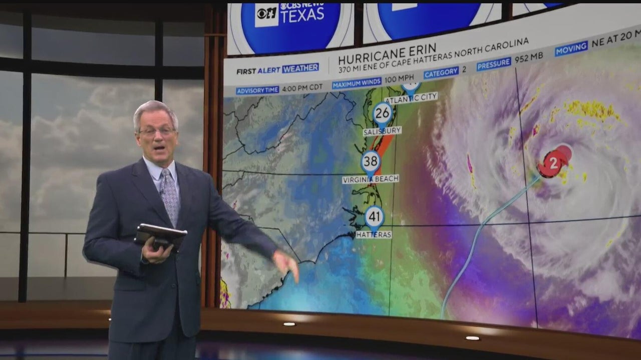 North Texas is heading into a hot and mostly sunny weekend, with temperatures expected to reach the upper 90s and feel even hotter. Meanwhile, Hurricane Erin continues to churn in the Atlantic as a Category 2 storm, creating dangerous surf and rip currents along the East Coast, though it is not expected to make landfall.