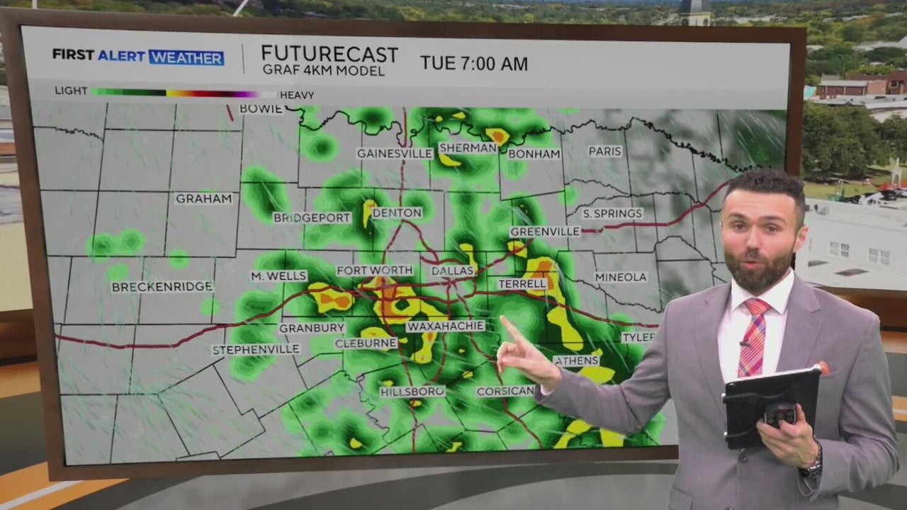 It's a mainly dry start to the workweek, but by this afternoon we can't rule out a few passing showers as a disturbance moves across Central Texas. Better rain chances will be for areas west and south of the Metroplex.