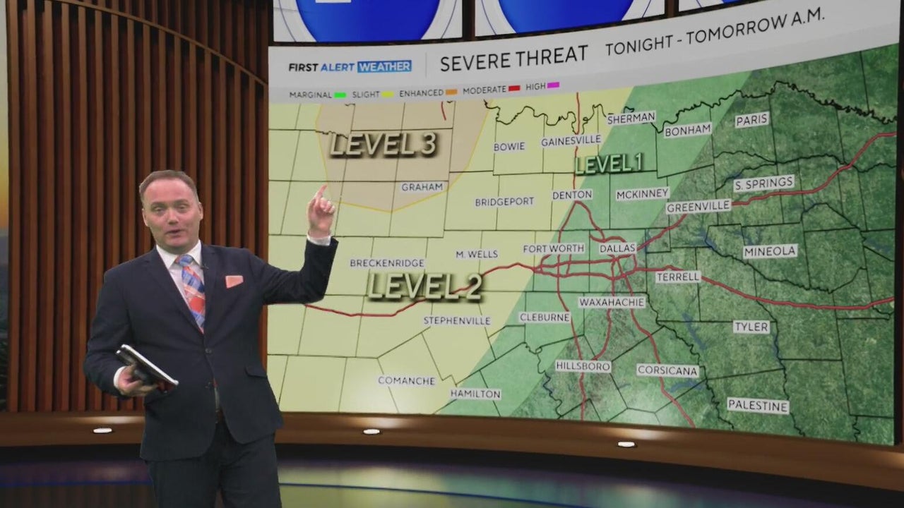 North Texas is bracing for multiple rounds of severe weather beginning tonight, with conditions already warm, muggy, and breezy ahead of incoming storms. Meteorologists say the region faces a level 1, 2, and 3 storm risk through tonight, tomorrow night, and into Saturday. A tornado watch is in effect until midnight for several counties, while a severe thunderstorm watch extends until 2 a.m. Storms are expected to move toward the I‑35 corridor this evening, bringing the potential for damaging winds, hail, and isolated tornadoes. Easter Sunday is forecast to be much calmer.