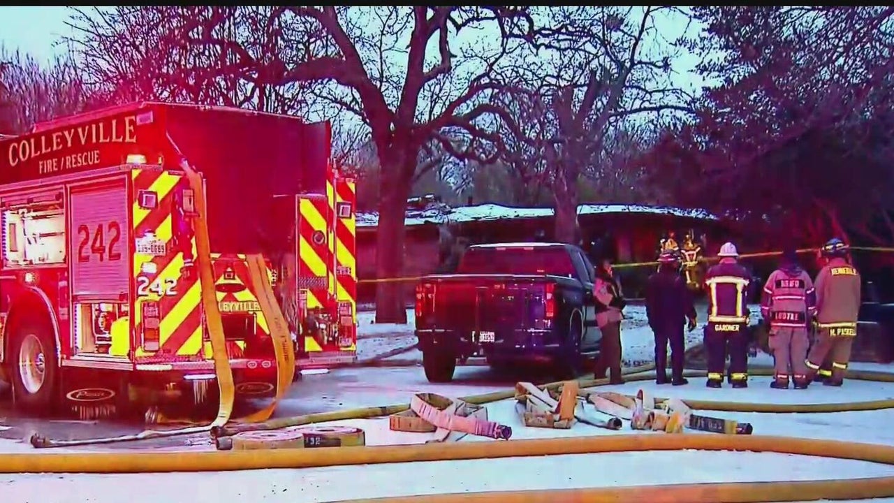 A two‑alarm fire in a Colleyville neighborhood left one person dead and displaced two others. Firefighters and police remained on scene for hours as the investigation continued, with crews still working inside the damaged home late into the evening.
