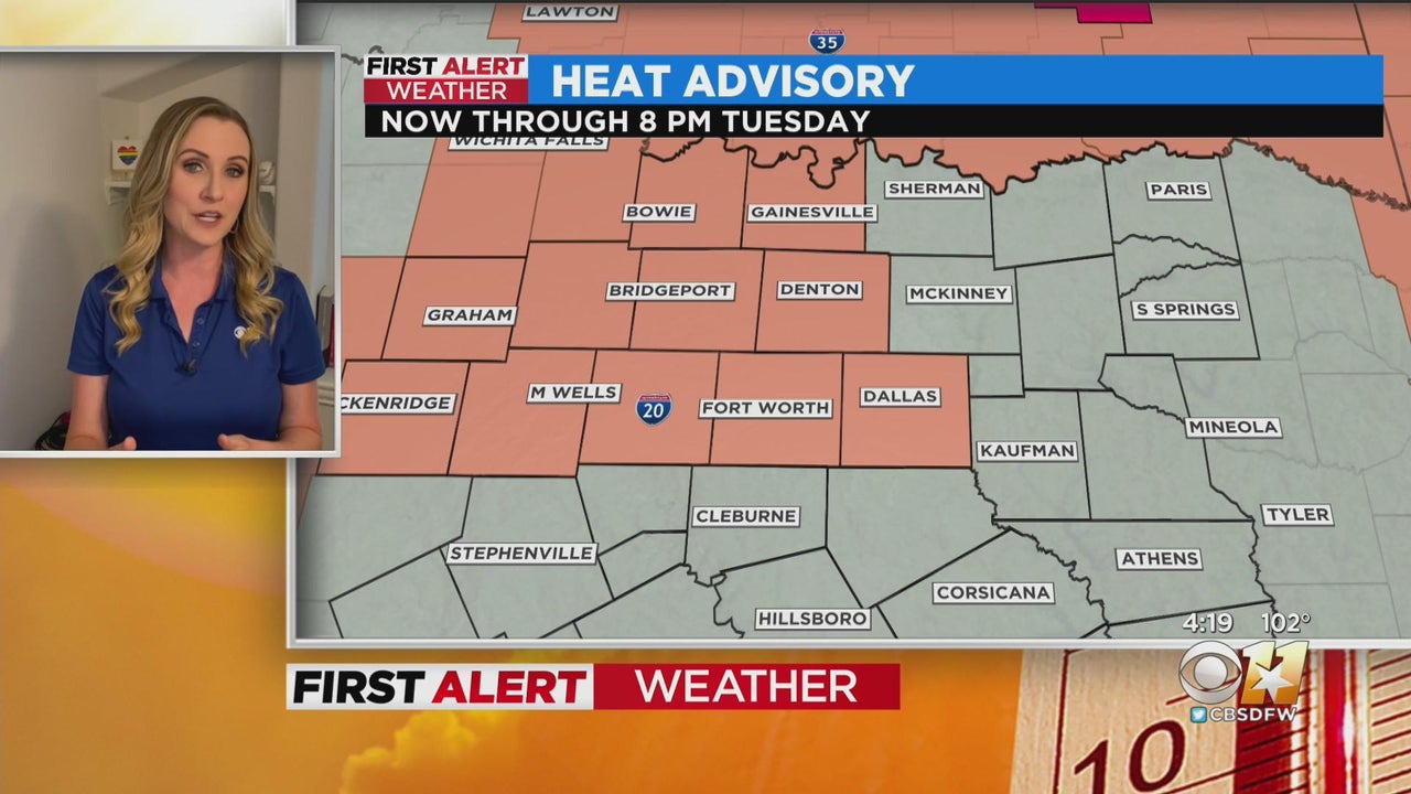 The brutal North Texas heat has put some counties under a Heat Advisory through 8 p.m. Tuesday.